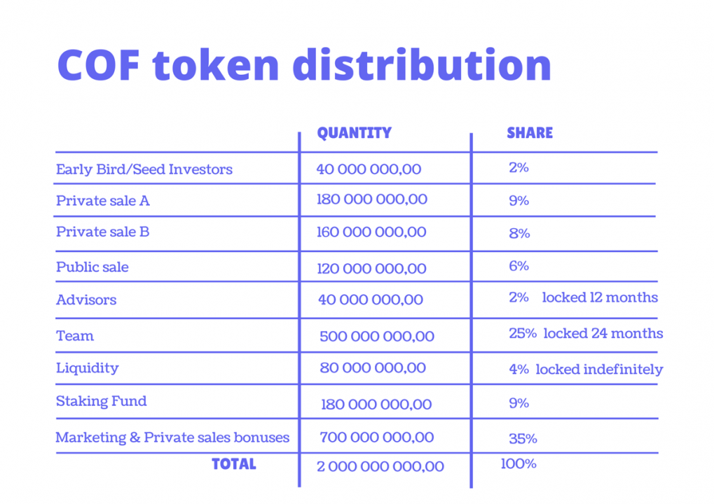 - investment from $1 000 +10% COF tokens,