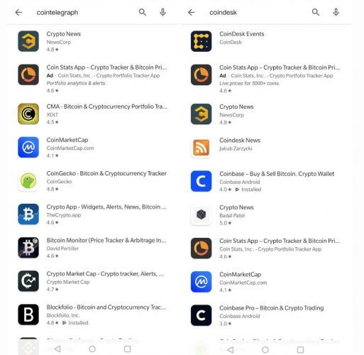In particular, the Cointelegraph and CoinDesk applications were removed from the store.